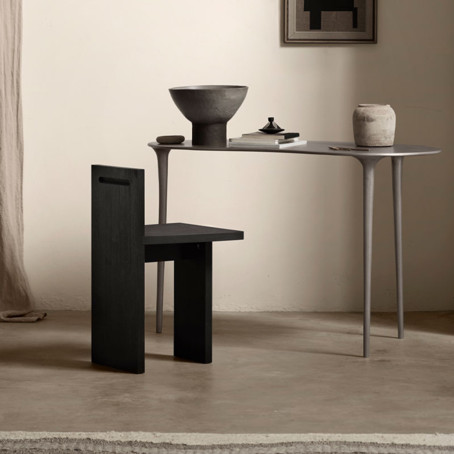 This chair is from our Koru series, where the furniture is designed in a fusion of Scandinavian simplicity and Japanese purity. The Koru series has been created with responsibility in mind, as the wood is offcuts from the Danish counter top industry. The furniture is produced in a Danish factory known for its inclusive working environment.