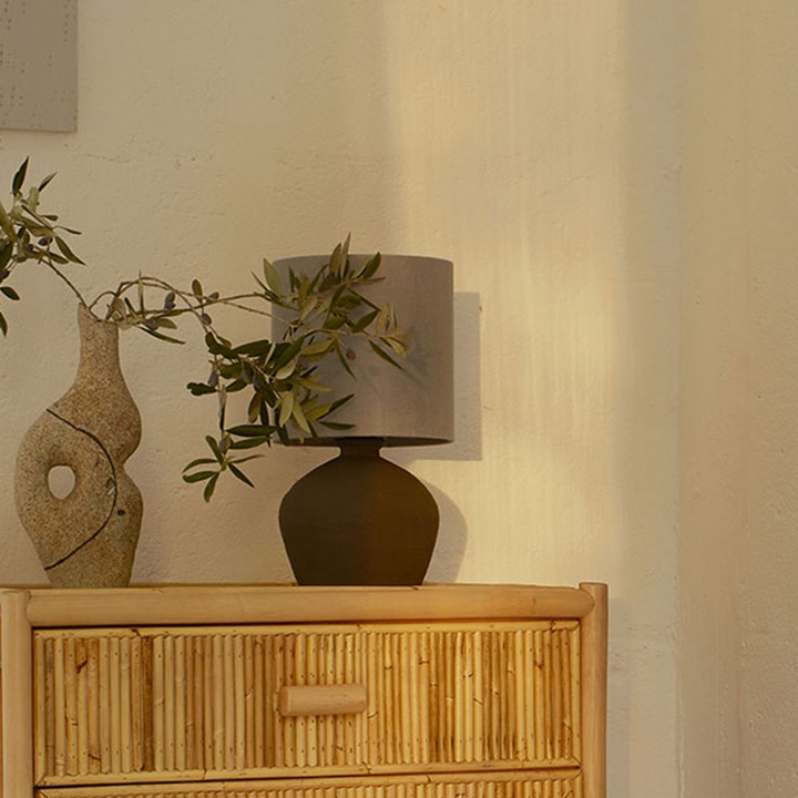 Handcrafted from clay this simple and elegant lamp in clay in the color Smoke, combines a modern look and a timeless shape. Combine the lamp with a beautiful lampshade and create your own expression.