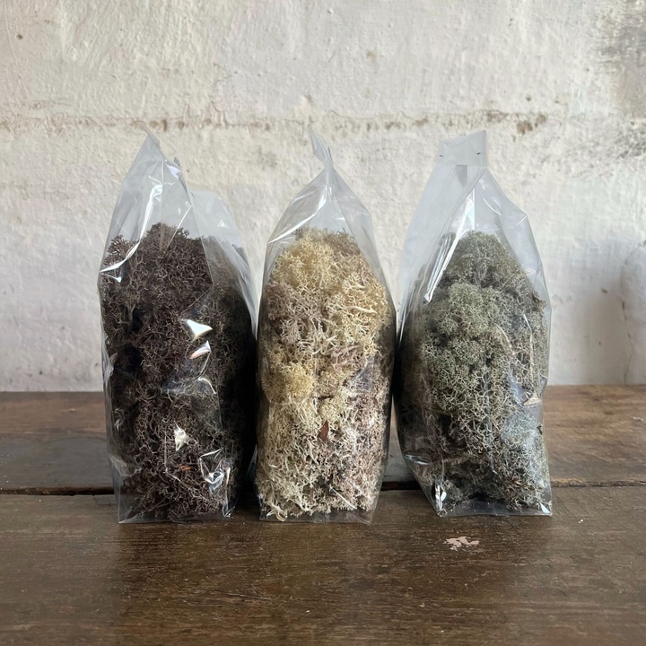 Moss for this year's Christmas decorations. Choose from decorative moss in the colours brown, green, and cream. Decorate with pine cones, branches, and twigs, or put the moss around the advent wreath. Limited only by imagination.
