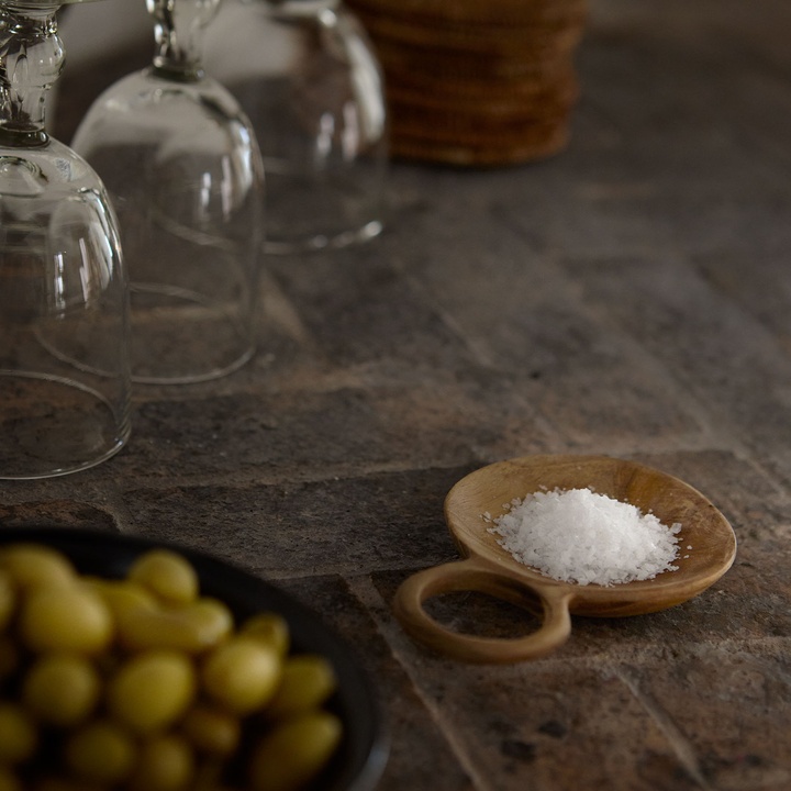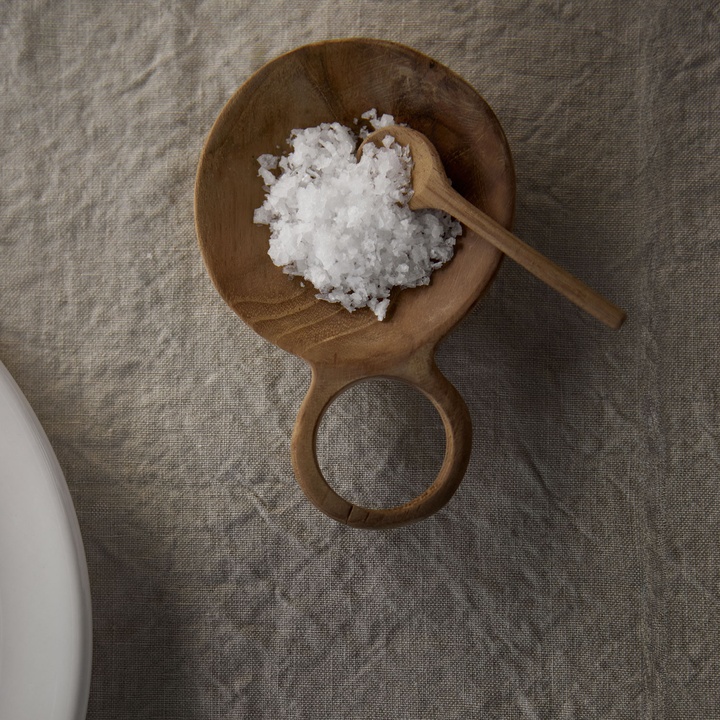 Oil the salt set, e.g., with olive oil, twice a year to nourish the wood and maintain its shine.