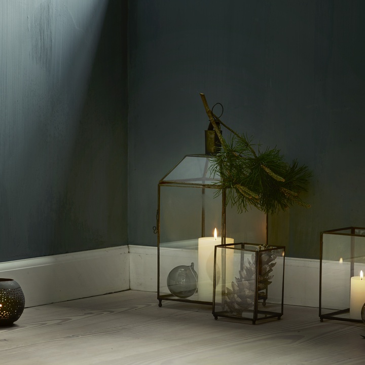 The glass walls in the lantern reflect the light beautifully on the table and add coziness when it gets darker.
