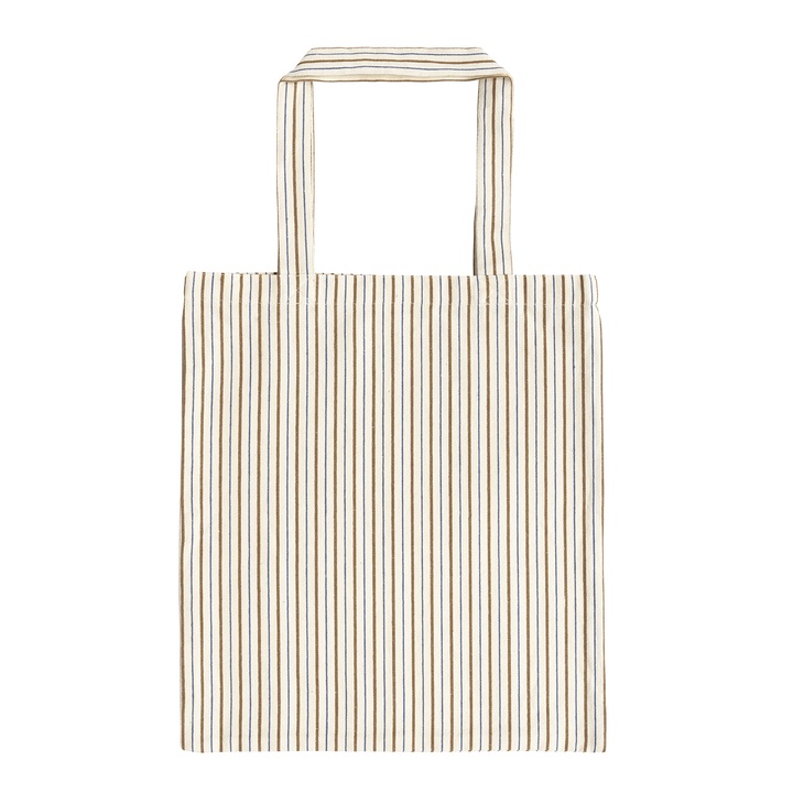 STAYSTRIPETOTE is an open-topped bag, with the distinct STAYSTRIPE pattern, ideal for all kinds of shopping. STAYSTRIPE is a line of cotton items. The design can be found as pillow covers, totebags, purses, bags (shoppers), and seat cushion covers. Characterized by its stripes running along the entire pillowcase. Each of the three varieties has two differently coloured stripes.