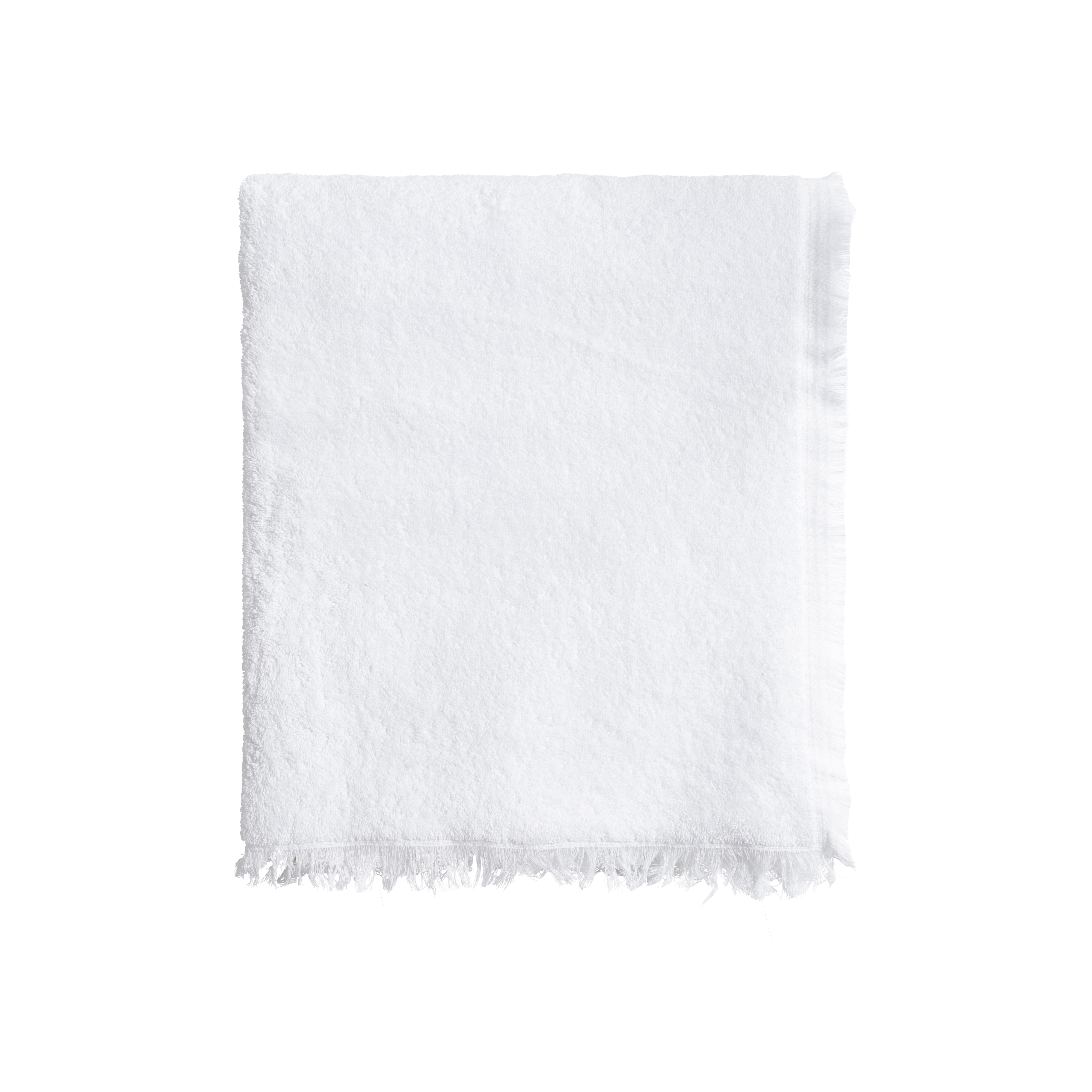 This thick white towel in cotton terry is perfect for the elegant bathroom. This towel is very soft and heavy and feels exclusive. It is beautifully finished with a fine fringe on all four sides.