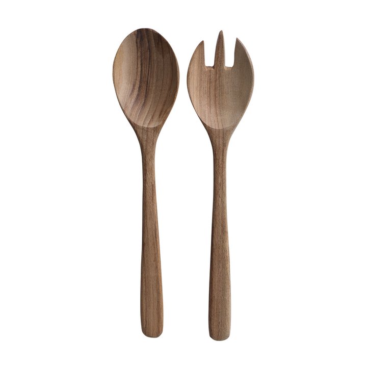 Salad set made in walnut wood. As the salad set is handmade, each product is unique. Wooden kitchen tools do not release any harmful chemicals and are therefore suitable for kitchen use.